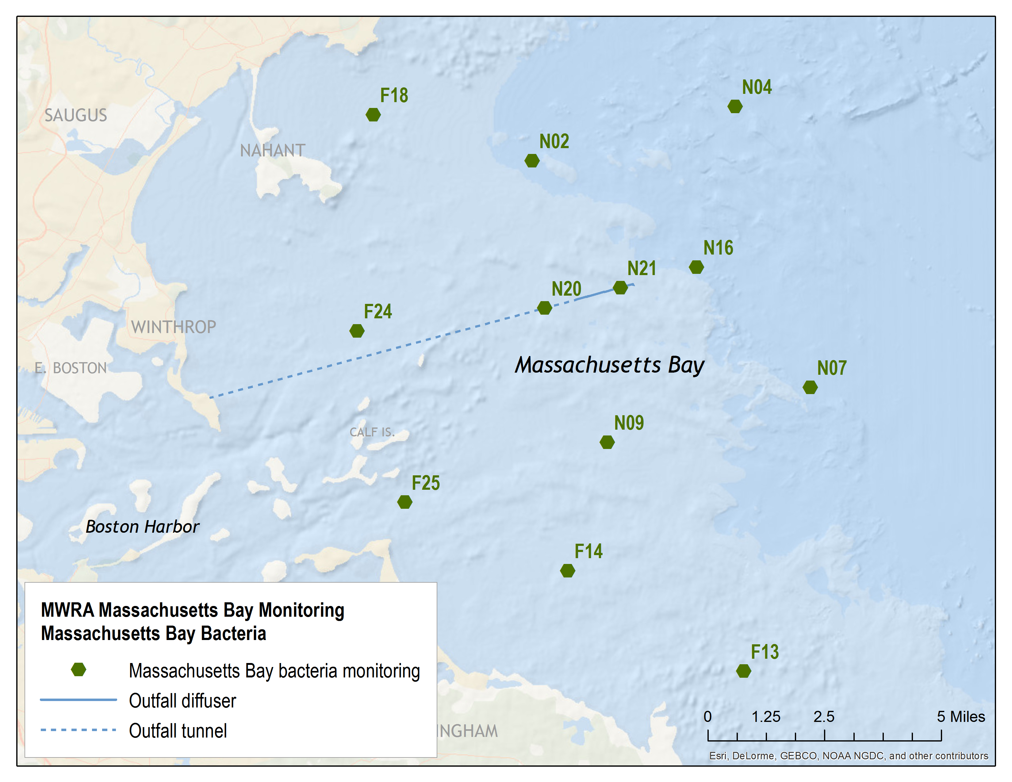 The Massachusetts Water Resources Authority (MWRA) officially opened the Massachusetts Bay effluent outfall in September 2000, and stopped discharging treated wastewater (effluent) to Boston Harbor. The results shown by years of monitoring are a cleaner Harbor and a healthy Bay.