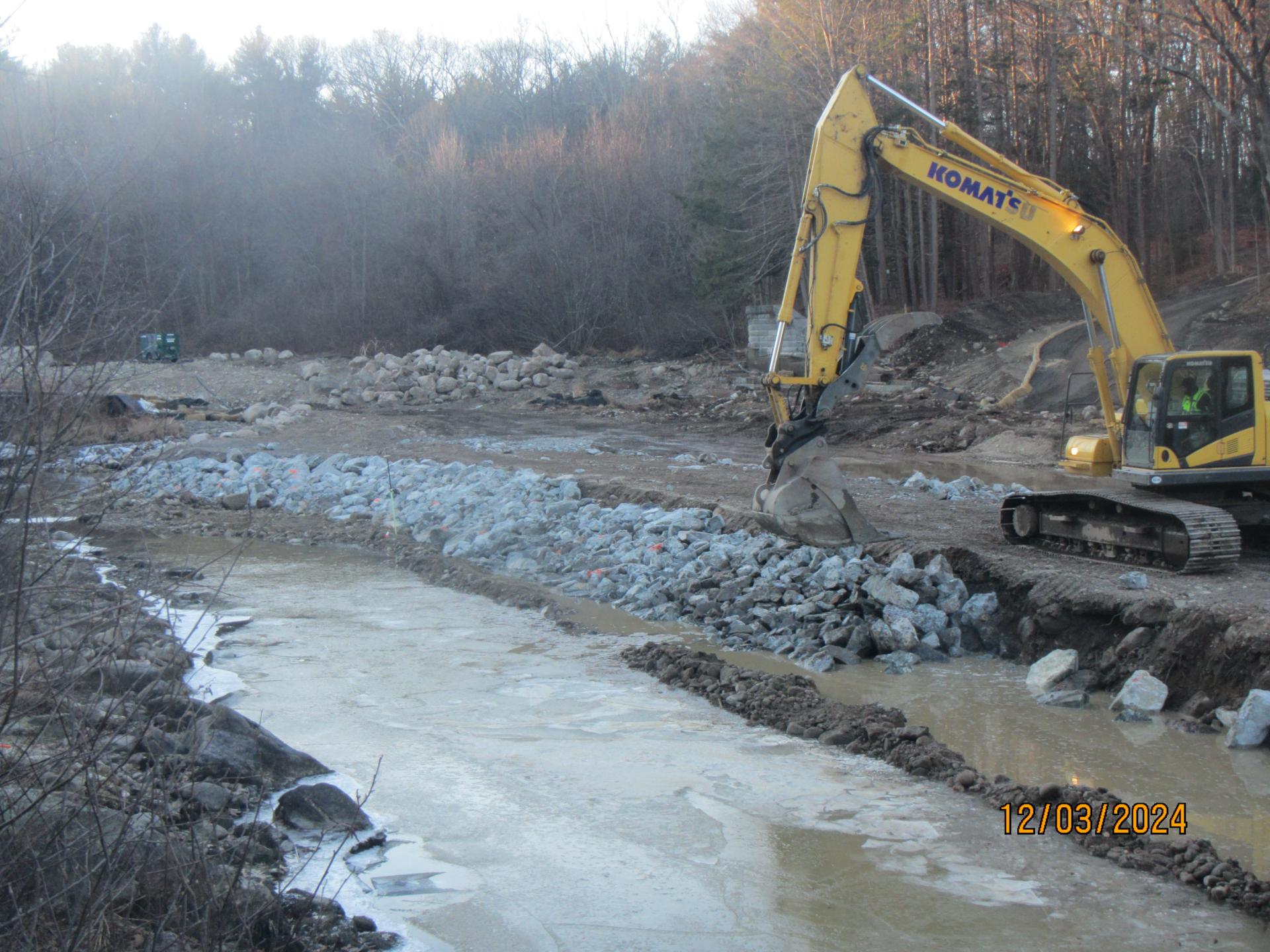 To support climate resilient projects while also restoring important habitats, the Massachusetts Water Resources Authority (MWRA) is in the process of removing the Quinapoxet River Dam in the Town of West Boylston. The earthen embankment dam, which is 250 feet long, 18 feet high, with a concrete and stone spillway spanning the river, was constructed in 1905 to support the creation of the Wachusett Reservoir. It has outlived its usefulness due to significant upgrades the MWRA has made to its water monitoring, treatment, and transfer systems.