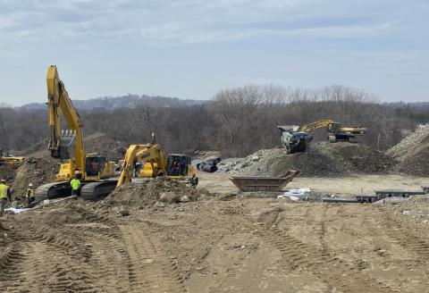 - Where able, the contractor has predrilled ledge at several locations to ease the process in removing it in order to advance the project.