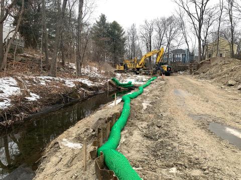 - Currently, the contractor is working inside the easement between the Towns of Stoneham and Winchester and within the streambed.