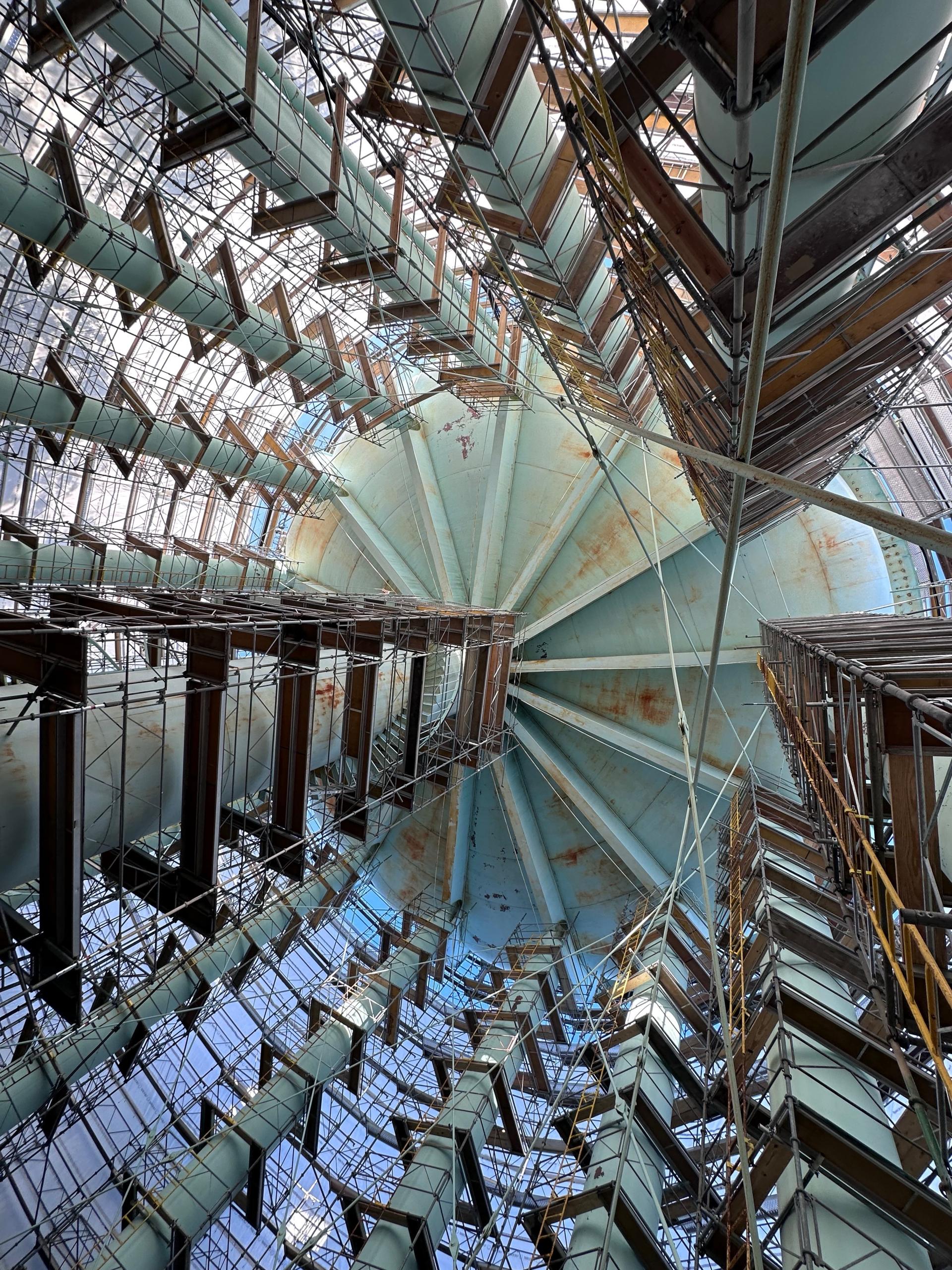 Protection and preservation of cellular infrastructure mounted at the top and base of the tank throughout the construction period.